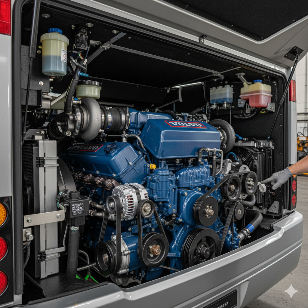 The Prevost H3-45 is powered by a Volvo D13 diesel engine, delivering strong highway performance with legendary reliability. This engine is specifically tuned for long-distance travel across U.S. interstates.