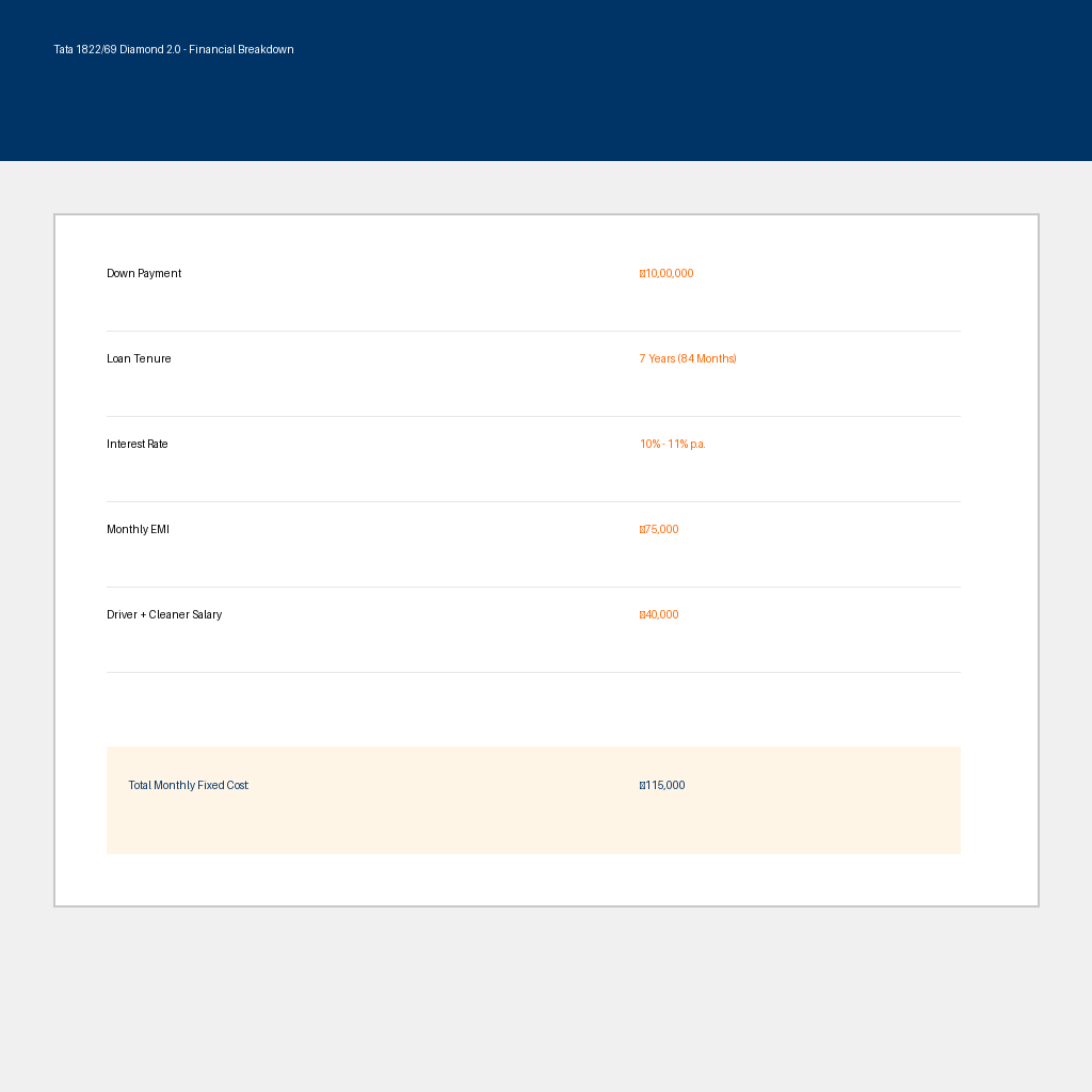 • Driver salary: ₹18,000 – ₹28,000